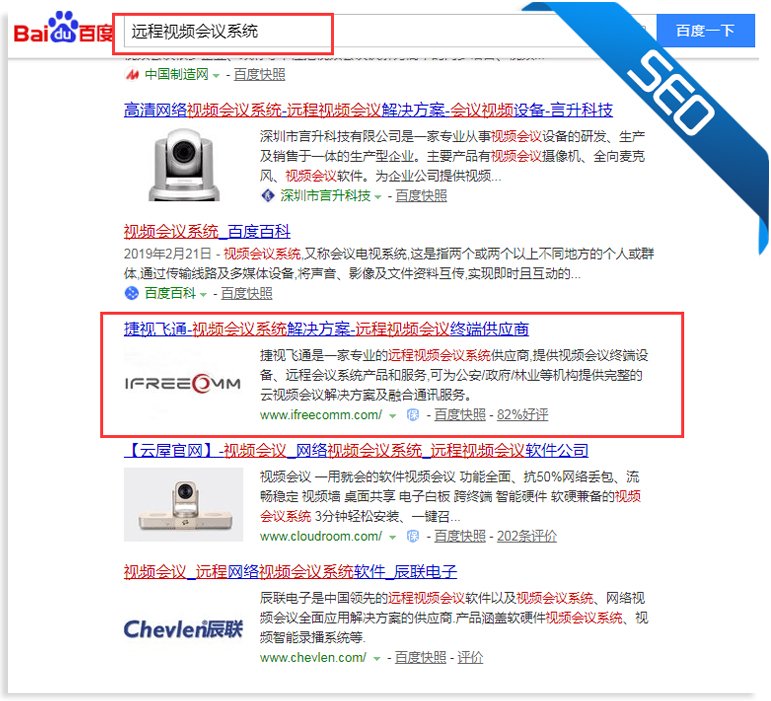捷视飞通是视频会议领域专家,新三板上市企业,公司品牌官网建成后,一直没有开始seo优化,2017年前公司讨论市场推广计划,将网络推广作为重要市场拓展渠道之一。而网站优化做为网络推广中之中,捷视飞通品牌推广负责人找到了我们,在了解我们在seo领域的众多成功案例之后,选择了与我们合作。经过我们全面的分析,捷视飞通之前没有移动端的网站,只是一个微信端的网站,但微信端的网站无法在搜索引擎被搜索到,结合当前移动互联网的趋势,更多的人通过移动端查找信息,因此最后由我们同时承接移动手机网站建设,同时移动端优化也纳入推广计为范畴。