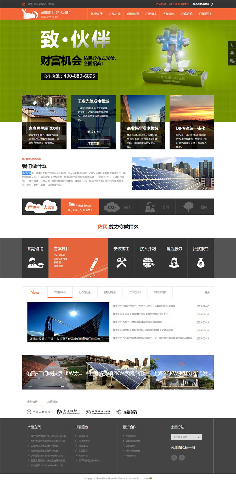 佑民光伏是一家集太阳能光伏组件生产销售、光伏电站建设运营、光伏发电项目金融投资等业务于一体的综合型企业。公 司结合自身优势资源,推出分布式光伏发电系统品牌—“佑民光伏”。针对居民屋顶、工商业屋顶、公共设施、学校建筑和光伏建筑一体化(BIPV)等项目提供太阳能光伏发电系统设计、安装、维护、运营一站式解决方案...
