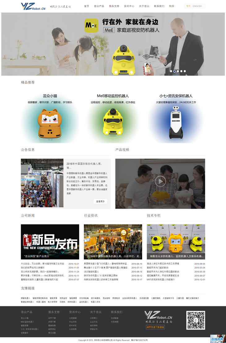 深圳市芸众科技有限公司的成立于2014年10月,是一家专注于服务机器人的研发、生产、销售的企业。其前身是深圳市谷润数字电源技术有限公司机器人事业部,2015年5月改组成立了深圳市芸众科技有限公司。网站首页缩略图: