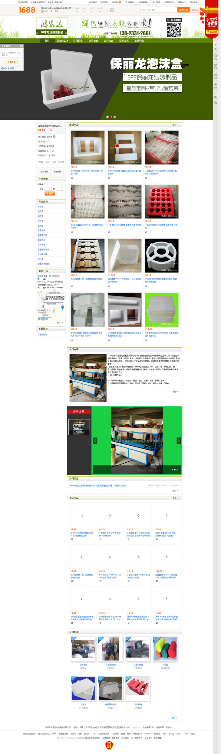 | 项目需求概况: | 网址:https://hfd123.1688.com 深圳市鸿富达包装制品有限公司 我们拥有先进的生产设备和专业生产人员,专业生产制造保丽龙(泡沫)成型、免模、片材和珍珠棉板材、管材、异形等包装材 |