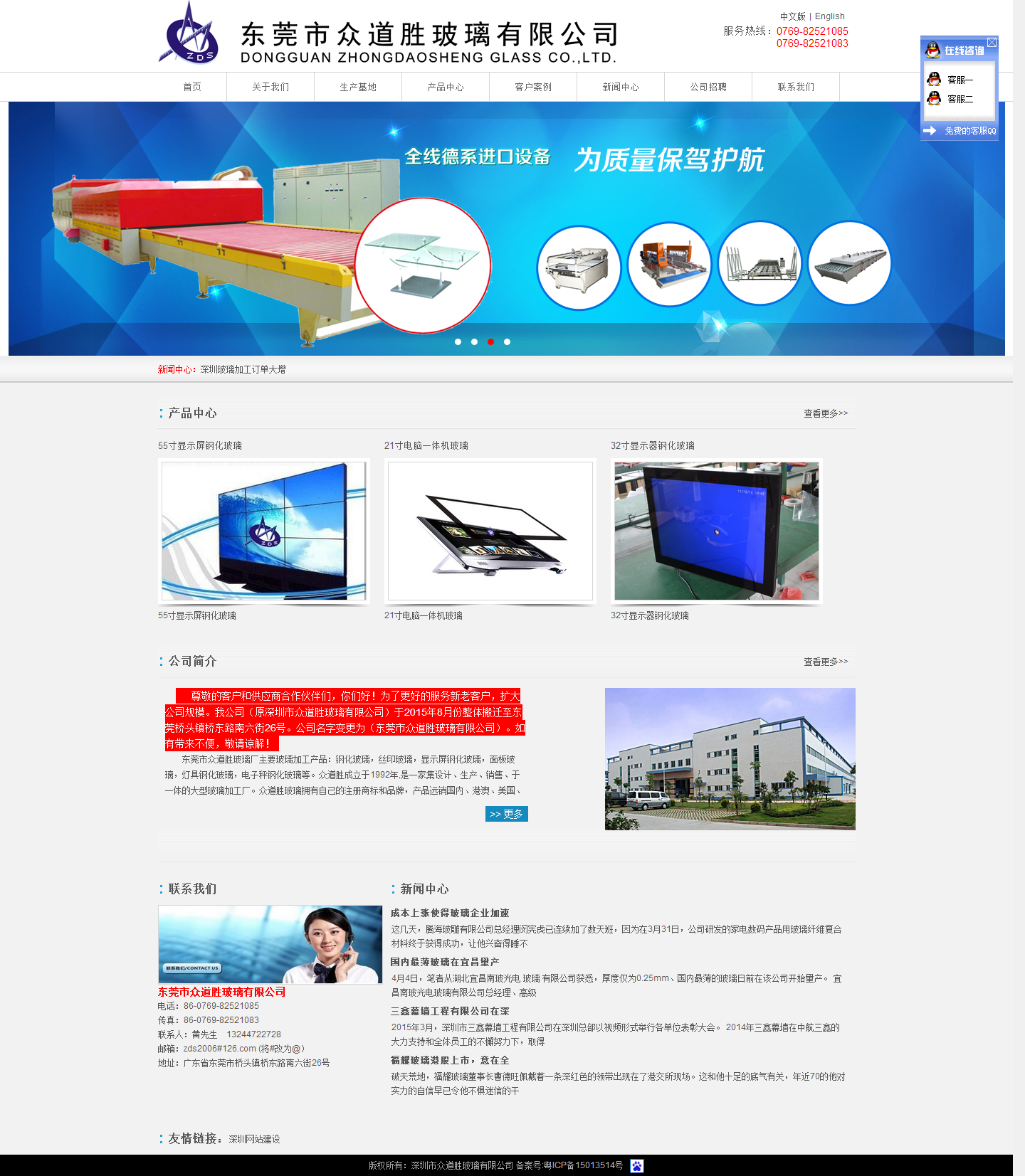 尊敬的客户和供应商合作伙伴们,你们好!为了更好的服务新老客户,扩大公司规模。我公司(原深圳市众道胜玻璃有限公司)于2015年8月份整体搬迁至东莞桥头镇桥东路南六街26号。公司名字变更为(东莞市众道胜玻璃有限公司)。如有带来不便,敬请谅解! 东莞市众道胜玻璃厂主要玻璃加工产品:钢化玻璃,丝印玻璃,显示屏钢化玻璃,面板玻璃,灯具钢化玻璃,电子秤钢化玻璃等。众道胜成立于1992年,是一家集设计、生产、销售、于一体的大型玻璃加工厂...