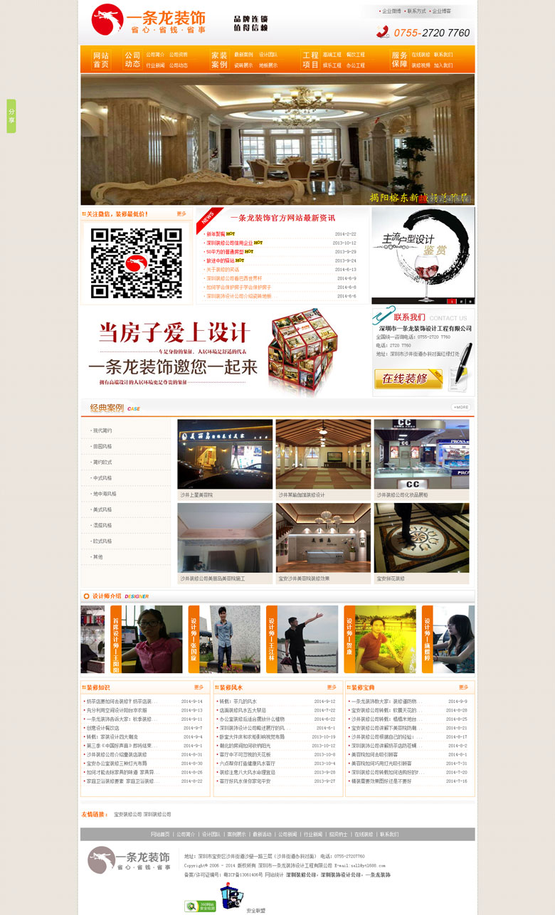 深圳市一条龙装饰设计工程有限公司是一家以深圳为中心,面向全国的专业装饰集团公司。公司专业从事家居装修、厂房装修、办公装饰、店面装饰、美容院装修。商场装修、酒店装饰、别墅装饰等,专业集室内外规划、设计、预算、材料配套、施工、监理、装饰及服务等一条龙服务 ...